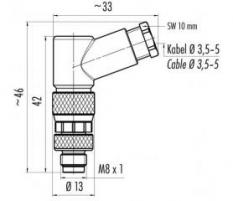 Prenesi PDF M8 konektorji brez kabla ~ Konektor 3K 08 0 00/M VIJAČNI Kotni Slika: Shema: Električna shema: Lastnost Vrednost Dimenzija M8 Stikalni tok [mA] 4000 mA Material ohišja PA plastika/Cinkova litina Dimenzija ohišja (L) 42 mm Mehanska zaščita IP 67 Priklop M8 moški Temperatura območje delovanja - 40°C do + 85 °C LED funkcija NE Napetost 60 V Presek vodnika 0,5 mm2 Število pinov 3 Spajanje vodnikov Vijačno Uvodnica za kabel 3,5 - 5 mm Uporaba Za priklop na ženski vgradni konektor, razdelilnik na mestih kjer je prostorska omejitev. Vijačni način spajanja zagotavlja hitri priklop vodnikov na terenu.