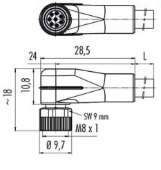 Za priklop induktivnih stikal (4 polna izvedba), optičnih, magnetnih senzorjev, na mestih kjer je prostorska omejitev. Spoj zagotavlja kvalitetno povezavo med senzorjem in konektorjem, tudi v zelo zahtevnih pogojih. Odpornost na emulzije, olja, kisline. |