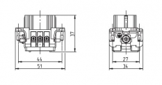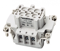 Prenesi PDF Močnostni konektorji ~ Konektorski vložek 710106 ŽENSKI Slika: Shema: Lastnost Vrednost Dimenzija M12 Zaščita vodnikov DA Stikalni tok [mA] 16000 mA Serija B Material ohišja termoplast Presek vodnika 0,5-2,5 mm2 (AWG 20-14) Dimenzija ohišja (L) 51 x 37 x 34 mm (27 in 44 mm med vijaki) Priklop vijačni Temperatura območje delovanja - 40°C do + 85 °C Napetost 500 V Število pinov 6 Zaloga je omejena na 1 kos Uporaba Za priklop grelcev, močnostnih naprav, priklop na orodjih. Dodatno naročite Ohišje konektorja P 712606 - montaža na kabel, P711406 MS panelno ohišje-nadometna montaža. Nasprotni konektor moški 6 polni 710206. Prednost za uporabnika Prihranek časa za hitro montaža na terenu preko vijačnega načine pritrditve