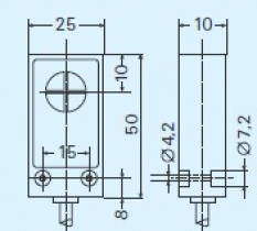Download PDF Inductive switch ~ Alternating (AC) with cable AC 25 5819 NC Picture: Scheme: Electrical scheme: Features Value Dimensions Quader 25 Mounting Unshielded Switching distance Sn [mm] 5 Supply voltage AC Supply voltage U[V] 20-240 V AC Voltage drop U[Ud] 5 V Max current I[mA] 500mA Min current I[mA] >5mA Material housing Plastics Housing form Quader Housing Dimensions L Mechanical protection IP 67 Connection 2m PVC Temperature operating range -25°C to + 70°C Repeat accuracy R < 2% Sn Hysteresis Hy 3% - 15% Switching frequency [ f ] 20 Hz LED function Yes