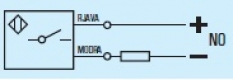 Prenesi PDF Induktivno stikalo ~ Kabelsko - dvožična izvedba DCA 12 4607 NO Slika: Shema: Električna shema: Lastnost Vrednost Dimenzija M 12 Način vgradnje stikala Poravnan Preklopna razdalja Sn [mm] 2 Napajalna napetost DC Napajalna napetost U[V] 10-30 V DC Padec napetosti U[Ud] 1,5 V Valovistost napetosti Ud < 10% Lastna raba Io[mA] 5 mA Maksimalni tok I[mA] 150mA Material ohišja Nerjavno jeklo 1.4301 Oblika ohišja valjasta Dimenzija ohišja (L) 55 mm Mehanska zaščita IP 67 Priklop 2m PVC Temperatura območje delovanja -25 °C do + 70 °C Ponovitvena točnost R < 2% Sn Histereza Hy 3% - 35% Frekvenca preklopa [f] 400 Hz Zaščita zamenjave polov Vgrajena LED funkcija DA