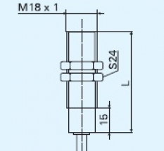 Download PDF Inductive switch ~ Cable- 2 wires DCA 18 4607 NO Picture: Scheme: Electrical scheme: Features Value Dimensions M 18 Mounting Shielded Switching distance Sn [mm] 5 Supply voltage DC Supply voltage U[V] 10-30 V DC Voltage drop U[Ud] 1,5 V Voltage tolerance Ud < 10% Consumption Io[mA] 5 mA Max current I[mA] 250mA Material housing Stainless steel 1.4301 Housing form Tubular Housing Dimensions L 61 mm Mechanical protection IP 67 Connection 2m PVC Temperature operating range -25°C to + 70°C Repeat accuracy R < 2% Sn Hysteresis Hy 3% - 35% Switching frequency [ f ] 300 Hz Polarity protection Build in LED function Yes