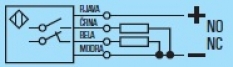 Prenesi PDF Induktivno stikalo ~ Kabelsko DCA 30 5729 PNP NO+NC Slika: Shema: Električna shema: Lastnost Vrednost Dimenzija M 30 Način vgradnje stikala Neporavnan Preklopna razdalja Sn [mm] 15 Napajalna napetost DC Napajalna napetost U[V] 10-30 V DC Padec napetosti U[Ud] 1,5 V Valovistost napetosti Ud < 10% Lastna raba Io[mA] 10 mA Maksimalni tok I[mA] 250mA Material ohišja Plastika Oblika ohišja valjasta Dimenzija ohišja (L) 61 mm Mehanska zaščita IP 67 Priklop 2m PVC Temperatura območje delovanja -25 °C do + 70 °C Ponovitvena točnost R < 2% Sn Histereza Hy 1% - 15% Frekvenca preklopa [f] 100 Hz Zaščita zamenjave polov Vgrajena LED funkcija DA Dobava V kolikor izdelka ni na zalogi: do 1 teden po naročilu Zaloga je omejena na 4 kose