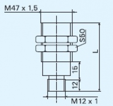 Prenesi PDF Induktivno stikalo ~ Konektorsko DCA 47 4619 K PNP NC Slika: Shema: Električna shema: Lastnost Vrednost Dimenzija M47 Način vgradnje stikala Poravnan Preklopna razdalja Sn [mm] 20 Napajalna napetost DC Napajalna napetost U[V] 10-30 V DC Padec napetosti U[Ud] 1,5 V Valovistost napetosti Ud < 10% Lastna raba Io[mA] 10 mA Maksimalni tok I[mA] 250mA Material ohišja Aluminij Oblika ohišja valjasta Dimenzija ohišja (L) 79 mm Mehanska zaščita IP 67 Priklop M12-4p Temperatura območje delovanja -25 °C do + 70 °C Ponovitvena točnost R < 2% Sn Histereza Hy 1% - 15% Frekvenca preklopa [f] 100 Hz Zaščita zamenjave polov Vgrajena LED funkcija DA