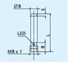 Prenesi PDF Induktivno stikalo ~ Kratko ohišje, konektorsko DSA 8 5308 C NPN NO Slika: Shema: Električna shema: Lastnost Vrednost Dimenzija Ø8 Način vgradnje stikala Neporavnan Preklopna razdalja Sn [mm] 2 Napajalna napetost DC Napajalna napetost U[V] 10-30 V DC Padec napetosti U[Ud] 1,5 V Valovistost napetosti Ud < 10% Lastna raba Io[mA] 10 mA Maksimalni tok I[mA] 200mA Material ohišja Nerjavno jeklo 1.4301 Oblika ohišja valjasta Dimenzija ohišja (L) 46 mm Mehanska zaščita IP 67 Priklop M8-3p Temperatura območje delovanja -25 °C do + 70 °C Ponovitvena točnost R < 2% Sn Histereza Hy 1% - 15% Frekvenca preklopa [f] 1000 Hz LED funkcija DA