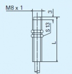 Prenesi PDF Induktivno stikalo ~ Kratko ohišje, kabelsko DSA 8 5618 NPN NC Slika: Shema: Električna shema: Lastnost Vrednost Dimenzija M8 Način vgradnje stikala Neporavnan Preklopna razdalja Sn [mm] 2 Napajalna napetost DC Napajalna napetost U[V] 10-30 V DC Padec napetosti U[Ud] 1,5 V Valovistost napetosti Ud < 10% Lastna raba Io[mA] 10 mA Maksimalni tok I[mA] 200mA Material ohišja Nerjavno jeklo 1.4301 Oblika ohišja valjasta Dimenzija ohišja (L) 38 mm Mehanska zaščita IP 67 Priklop 2m PVC Temperatura območje delovanja -25 °C do + 70 °C Ponovitvena točnost R < 2% Sn Histereza Hy 1% - 15% Frekvenca preklopa [f] 1000 Hz LED funkcija DA