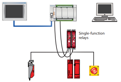 Ena varnostna komponenta (svetlobna zavesa) = en varnostni modul za izklop naprave (MSR127T)