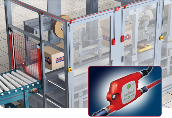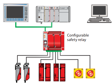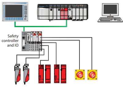 e-stop stikalo, varnostna svetlobna zavesa, varnostno megnetno stikalo, mehansko varnostno stikalo, varnostna ključavnica za zagotavljanje PLe.