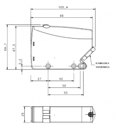 Prenesi PDF Optični senzorji razno ~ Tipalo – izločitev ozadja S300-PA-1-M06-RX Slika: Shema: Električna shema: Lastnost Vrednost Preklopna razdalja Sn [mm] 200 - 2000 Odzivni čas 25 ms Nastavitev razdalje trimer Svetloba oddajnika Infrardeča 880 nm Izvedba optike RAVNA LED funkcija DA Zaščita zamenjave polov Vgrajena Frekvenca preklopa [f] 20 Hz Temperatura območje delovanja - 25 °C do + 55 °C Priklop priključe sponke, kabelska uvodnica Mehanska zaščita IP 67 Dimenzija ohišja (L) 100,4 x 69,7 x 25 mm Oblika ohišja Kvader Material ohišja PBT plastika Maksimalni tok I[mA] 3000 mA (rele) Lastna raba Io[mA] 30 mA ( moč 3W) Padec napetosti U[Ud] 2 V Napajalna napetost VDC Napajalna napetost U[V] 24 - 240V ac / 24-60Vdc Časovna funkcija 0,6 - 16 zakasnitev vklopa, izklopa, vhodni impulz-vklop izhoda