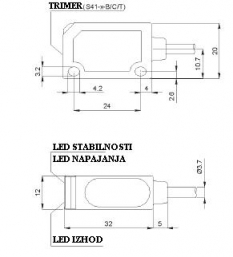 Prenesi PDF Optični senzorji razno ~ Svetlobna zapora-sprejemnik S41-2-F-P PNP, NO+NC Slika: Shema: Električna shema: Lastnost Vrednost Dimenzija 37 X 20 X 12 Preklopna razdalja Sn [mm] 100 - 6000 Napajalna napetost DC Napajalna napetost U[V] 10-30 V DC Padec napetosti U[Ud] 1,5 V Lastna raba Io[mA] 30 mA Maksimalni tok I[mA] 100 mA Material ohišja ABS plastika Oblika ohišja Kvader Dimenzija ohišja (L) 37 mm Mehanska zaščita IP 67 Priklop 2m PVC Temperatura območje delovanja - 25°C do + 55 °C Zaščita zamenjave polov Vgrajena LED funkcija DA Izvedba optike RAVNA Način delovanja / Svetloba oddajnika Infrardeča 880nm