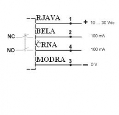 Prenesi PDF Optični senzorji razno ~ Zrcalna zapora – polarizacijska prozorna S41-2-T-P PNP PNP, NO+NC Slika: Shema: Električna shema: Lastnost Vrednost Dimenzija 37 X 20 X 12 mm Preklopna razdalja Sn [mm] 100 - 700 Napajalna napetost DC Napajalna napetost U[V] 10-30 V DC Padec napetosti U[Ud] 1,5 V Lastna raba Io[mA] 30 mA Maksimalni tok I[mA] 100 mA Material ohišja ABS plastika Oblika ohišja Kvader Dimenzija ohišja (L) 37 mm Mehanska zaščita IP 66 Priklop 2m PVC Temperatura območje delovanja - 25°C do + 55 °C Frekvenca preklopa [f] 500 Hz Zaščita zamenjave polov Vgrajena LED funkcija DA Izvedba optike RAVNA Način delovanja temno/svetlo-prevodni Svetloba oddajnika rdeča 660 nm Nastavitev razdalje DA Odzivni čas 1 ms