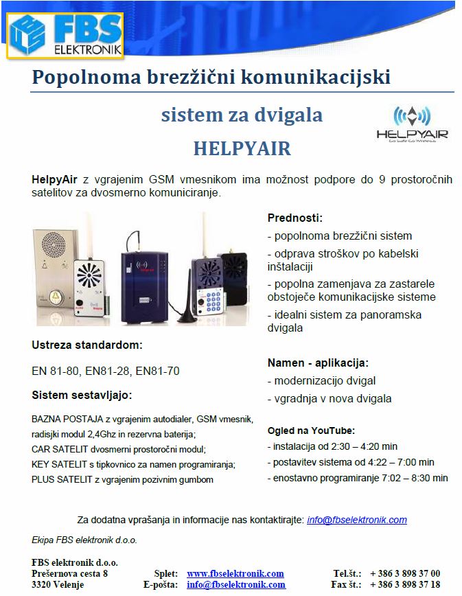 Prvi brezžični komunikacijski sistem za dvigala po standardu EN81-80; EN 81-28; EN 81-70.