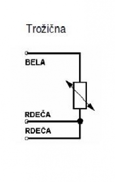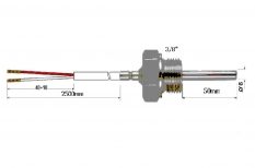 Prenesi PDF Temperaturno tipalo ~ Za tipanje temperature PT100-PVC-2,5m 3/8" B trožično Slika: Shema: Električna shema: Lastnost Vrednost Dimenzija Ø 6 x 50mm, navoj glave 3/8\" Oblika ohišja valjasta Priklop 2,5m PVC Temperatura območje delovanja 105°C